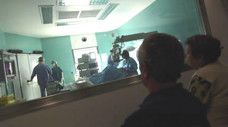 Los quirófanos disponen de una sala contigua acristalada donde los acompa-ñantes siguen la intervención del paciente que normalmente dura muy poco tiempo.